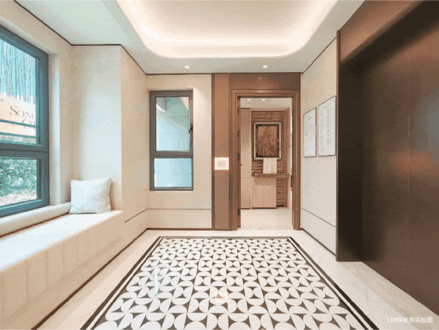 就以二批次加推建面约98㎡临河奢席为例,类一梯一户带飘窗梯厅,提升归家仪式感同时,还是生活延伸区,孩子的玩具车、全家的行李箱、爸爸的钓鱼装备,皆可在此妥善安置,即使首次购房也能有改善级的私密性与额外空间。