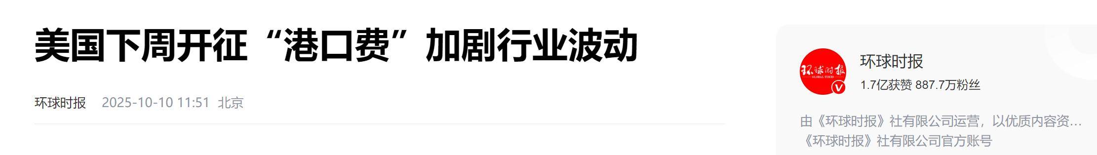 除此之外,中国的反制还带有战略耐性。中国将港务费设置为逐步递增的模式,自10月14日起,每净吨400元人民币,并逐年递增,直至2028年达到每吨1120元。这种安排向美国发出了强烈信号:如果美国政府继续拖延纠错,那么跨国企业将面临更大的痛苦,并且这种痛苦将随着时间的推移而成几何级数地增加。