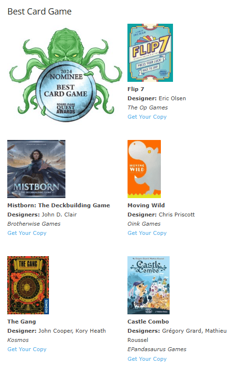 在包括Board Games Quest等论坛、渠道举办的多个年度桌游奖项评选中与《七连翻》等在内时新佳作一起跻身年度卡牌游戏的评选行列,收获众多热议~
