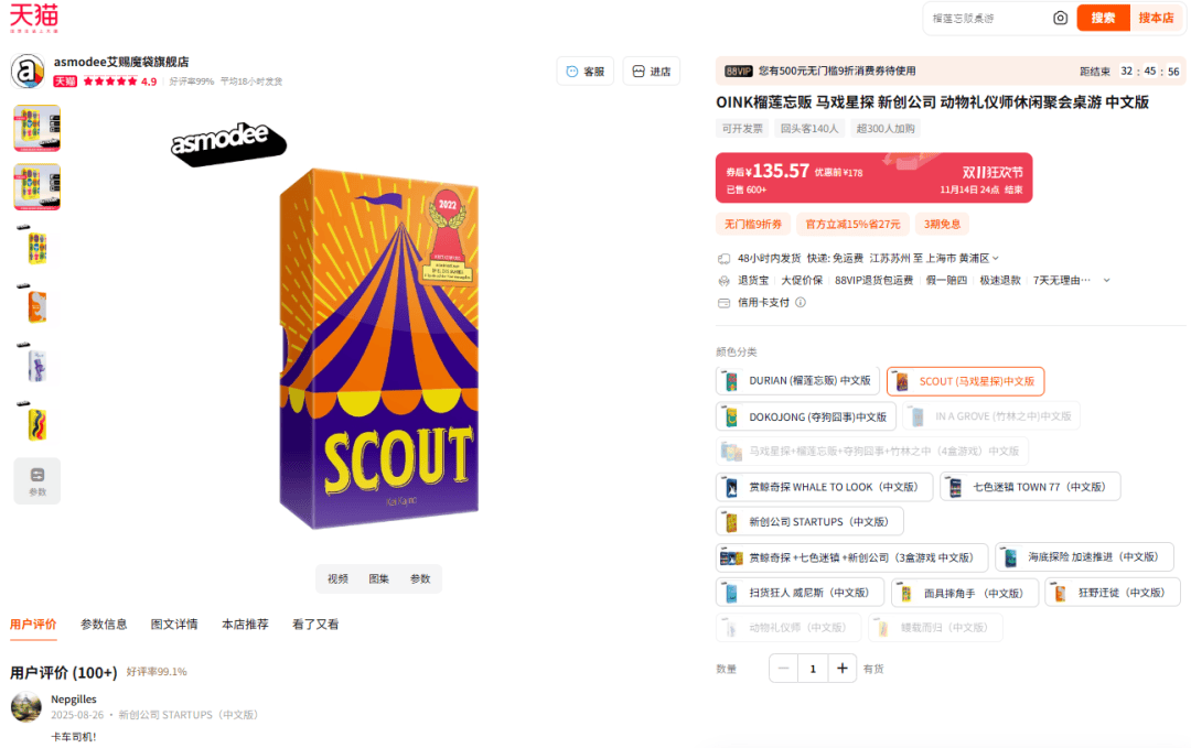 在价格方面,与刚刚提到的《马戏星探》一样,《新创公司》也可叠加单件优惠和88会员9折优惠券: