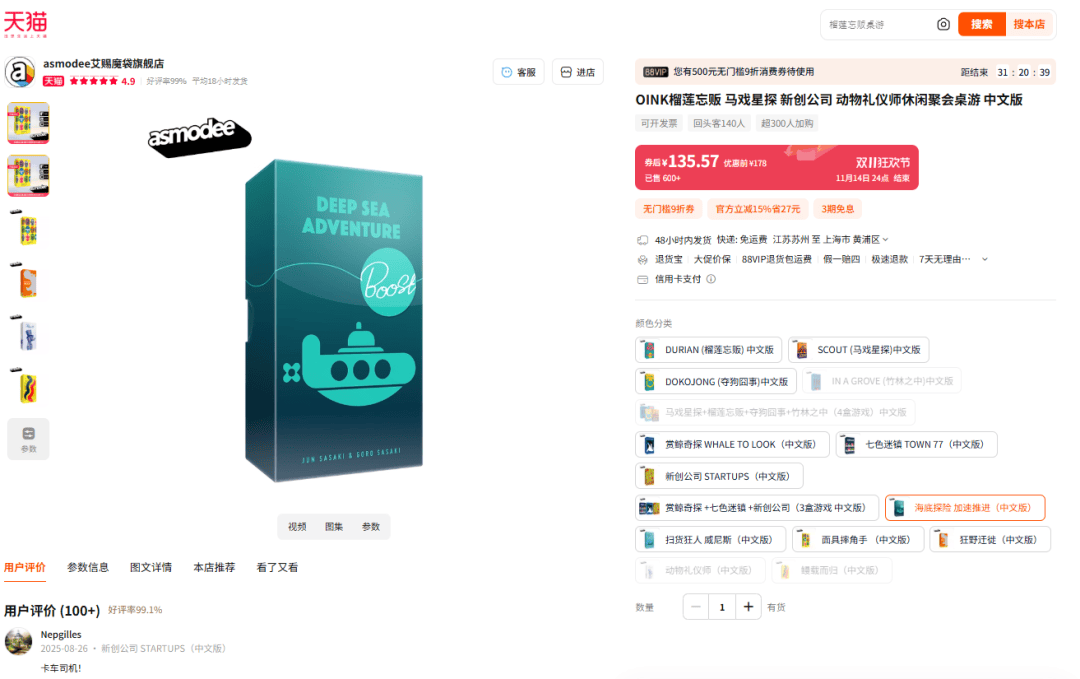 在价格方面,与今天其他介绍过的几款OINK小盒游戏一样,《海底探险:加速推进》在叠加多档优惠及满减之后游戏单盒预计到手价来到135.6元: