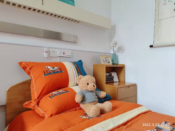 占地面积1693平米,规划30个房间60张床位。房间内配置整体固定式家具、上滑轨平移门、卫生间推拉门、整体卫浴、智能空气净化系统、干式地暖、除臭壁纸等适老化设备。采用智能化网络设备连接,配有智能检测床垫、睡眠智能照护系统,对老人进行24小时生命体征检测及预警。