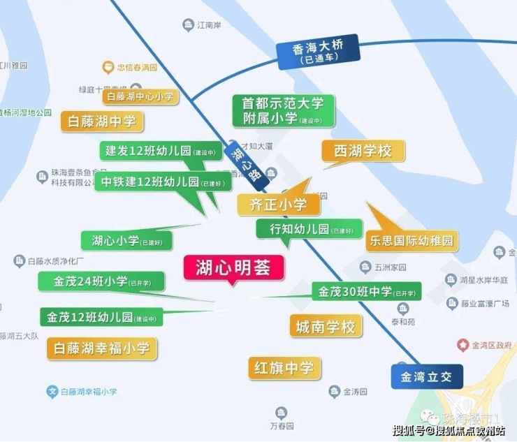 教育大城!!!未来5年,湖心新城将成为斗门区新增中小学最多的区域湖心新城规划27所全龄段学府正加速兑现中,目前,项目周边2km内已落成湖心小学、金茂中小学、城南中小学、齐正小学等。(来源:珠海西部中心城区A片区控制性详细规划(2017年修编)