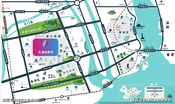 招商华发湖心明荟坐拥湖心路、双湖路双主轴,雄踞珠海大桥、香海大桥(预计2022年通车)桥头堡位置,跨桥速达主城。周边珠三角环线高速、广佛江珠高速等快线环绕,更有广州城际、金湾机场等立体路网,近享两小时湾区生活圈。