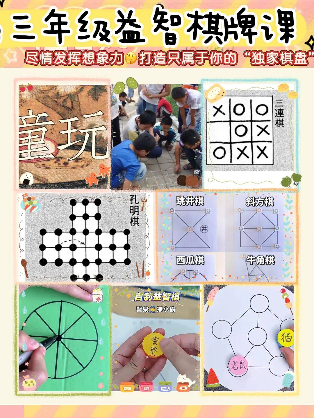 规则改造与创新:鼓励学生改编现有棋类规则,或自主设计新棋盘、新规则,成为 “小小游戏设计师”。 分组创作实践:分组设计专属棋类(如动物森林冒险棋、数学算式闯关棋),完成从设计到试玩、修改的全流程。