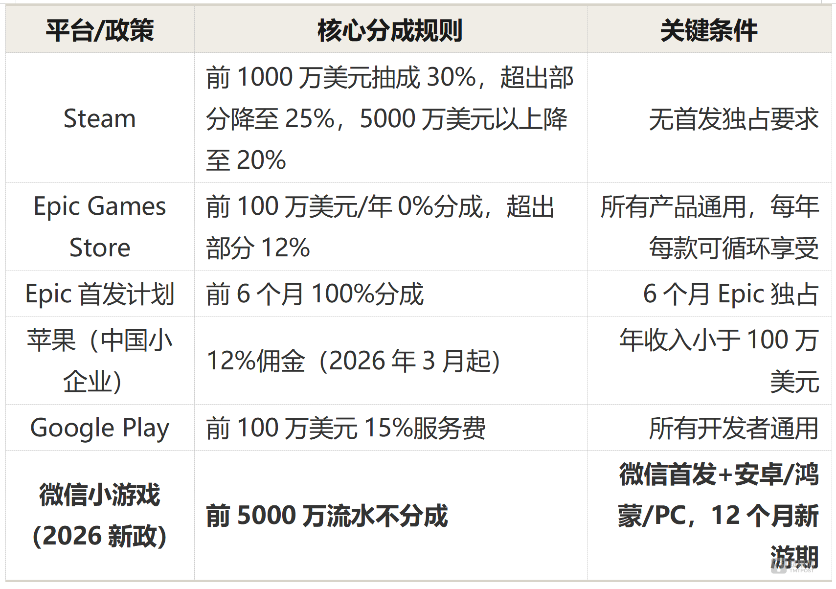 这并不是微信独有的玩法。Epic用独占协议换100%分成,Steam用阶梯分成稳定大作供应,苹果用生态整合收过路费。平台的逻辑永远是同一个:用短期让利换取长期生态繁荣。