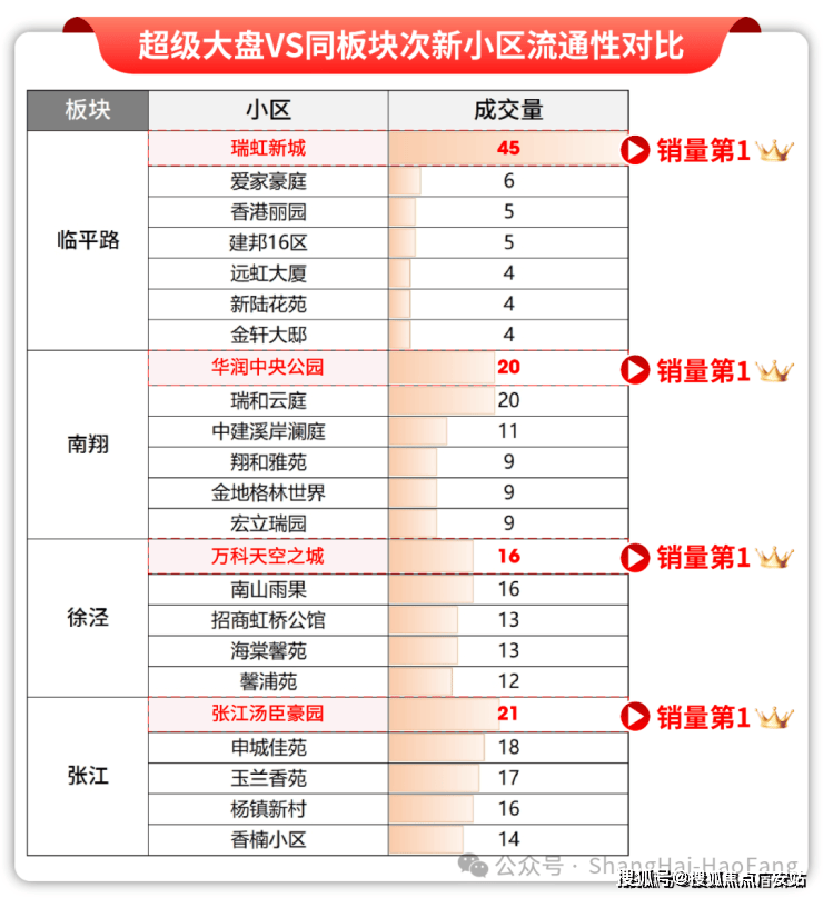 从过往表现来看,但凡能定鼎区域大盘的项目,比如瑞虹新城、汤臣豪园、华润中央公园、万科天空之城,首先销量即流通性区域第一!