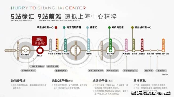 论地铁通勤:项目位于15号线元江路站地铁上盖,南接大零号湾,北上5站到徐汇。自驾方面,3个红绿灯上虹梅路高架,约8公里到中环。地段与通勤优势明显!