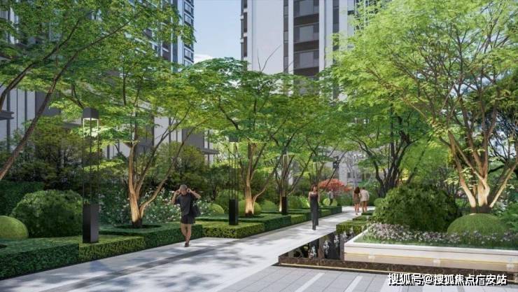 【保利·光合上城】采用“一心两轴三门”的的趣味归家动线,结合石材、绿地、地垫编制的多样视觉地面铺装,将社区景观从热闹到安静,沿途层层推进,带来乐趣不同的漫步触感。