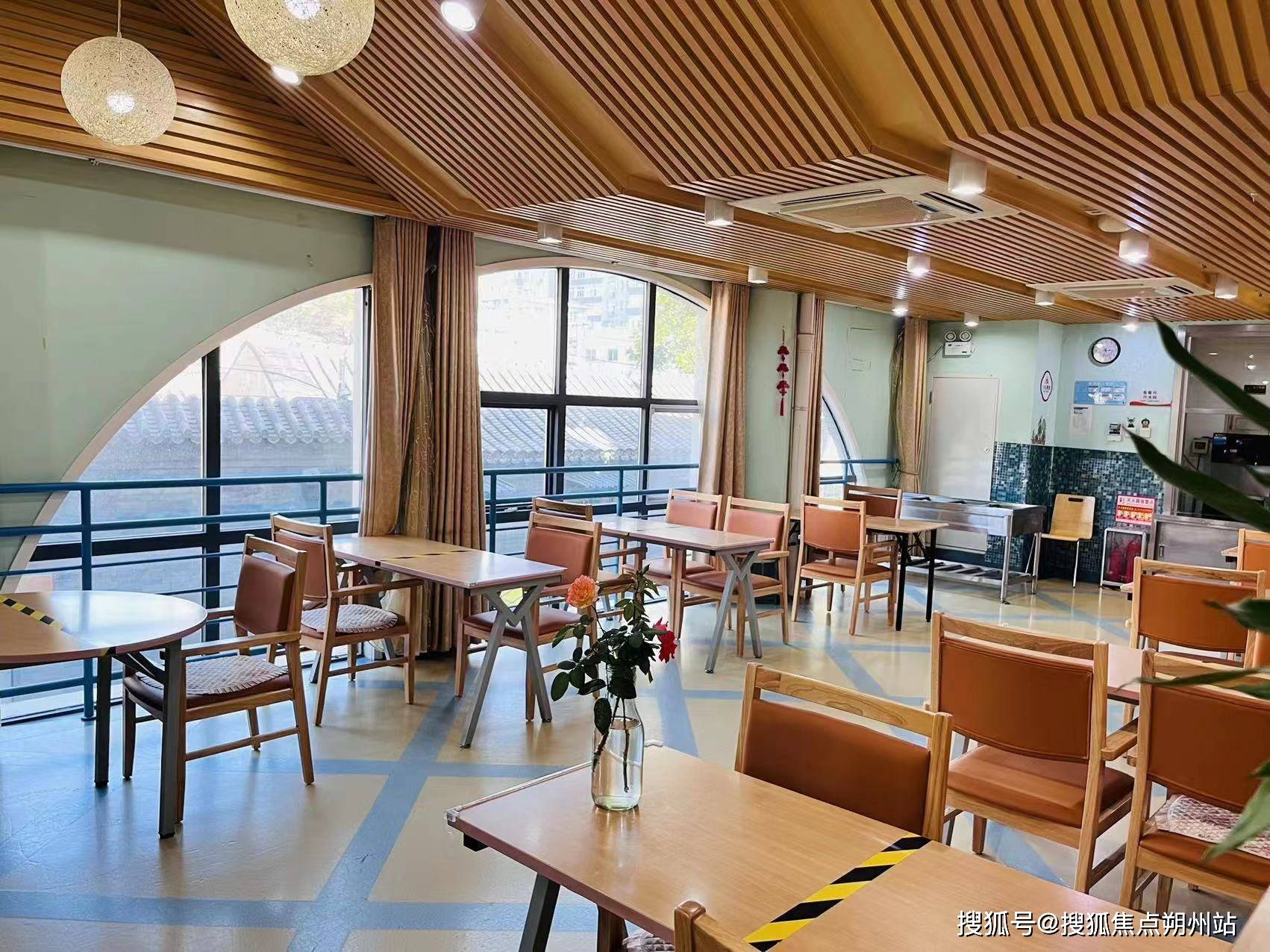 园区整体采用回字形围合式布局,中心打造了 400 平方米的全龄友好型中心庭院,庭院内种植了国槐、玉兰、海棠、银杏、元宝枫等数十种北京本土花木,四季有景、三季有花,院内绿植覆盖率超 65%,形成了城市核心区难得的 “天然氧吧”。庭院内的步道全部采用无高差无障碍设计,双侧设置连续防滑扶手,地面铺设了高防滑系数的专业适老地胶,即便雨雪天气也能有效避免长者滑倒,步道沿途设置了多处休憩廊架与休闲座椅,长者可以随时停下脚步休息、聊天、赏景,无需担心行走安全。庭院内还专门打造了共享种植园,划分了多个小型种植区块,供有兴趣的长者亲手栽种蔬菜、花卉、中草药,在劳作中获得乐趣与成就感,同时也能唤醒长者的田园记忆,丰富日常休闲生活。除了地面庭院,机构还专门打造了近 300 平方米的屋顶花园,花园采用全封闭防滑设计,设置了休闲茶座、太极习练区、花卉观赏区,站在屋顶花园可俯瞰周边胡同风貌,春有百花、秋有红叶,是长者日常休闲、健身、会客的绝佳场所,在北京二环内的核心地段,这样的户外休闲空间显得尤为难得首开寸草