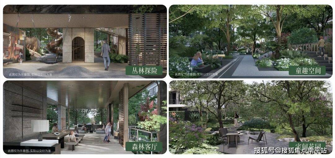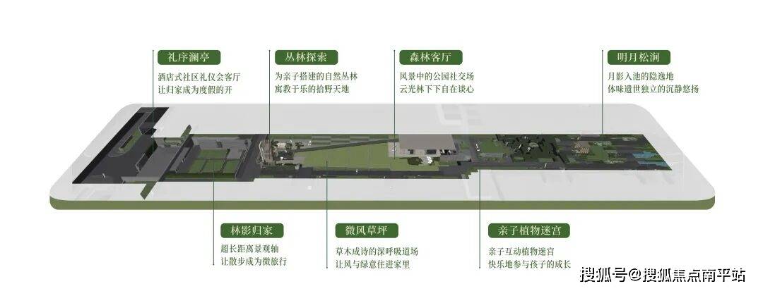 社区园林内设置【礼序澜庭】、【林影廊桥】、【丛林探索】、【微风草坪】、【森林客厅】、【亲子植物迷宫】、【明月松涧】、【疗愈庭院】、【健体公园】、【童趣空间】、【康体花园】等功能板块,为业主打造全龄友